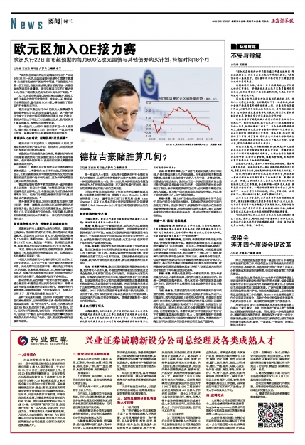 欧洲央行22日宣布超预期的每月600亿欧元国债与其他债券购买计划,持续时间18个月