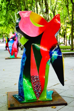 光滑圆润的唯美造型、五颜六色的色块覆盖,这就是《哥伦布之谜》给观众带来的第一印象。《哥伦布之谜》由戈勃朗于2006年创作,其灵感汲取于历史上著名的探险家和航海家,克里斯托弗·哥伦布的航海志。为了纪念人类的冒险精神以及美洲新大陆的发现,戈勃朗创作了十件富有象征意义的作品,它们造型圆滑、线条简洁,意在展示人类最初的生活状态,映射原始主义。此外,作品还大量地运用了颜色鲜艳的色块,让颜色在雕塑平面之间流动,栩栩如生地演绎了生活在美洲大路上印第安人把颜色“穿”在身上的文化。