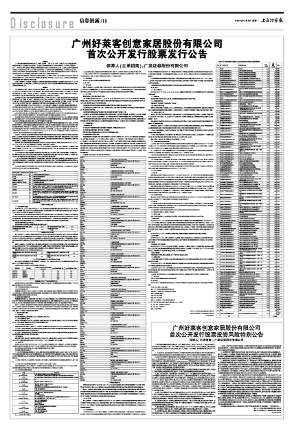 广州好莱客创意家居股份有限公司(以下简称"好莱客"、"发行人"或"公司")首次公开发行2,450万股人民币普通股(A股)(以下简称"本次发行")将于2015年2月10日分别通过上海证券交易所交易系统和网下发行电子化平台实施。发行人、保荐人(主承销商)特别提请投资者关注以下内容: