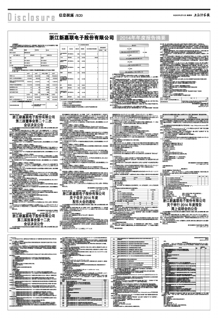 浙江新嘉联电子股份有限公司2014年年度报告摘要