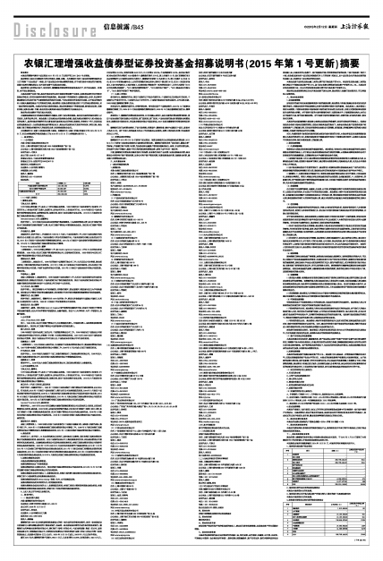 农银汇理增强收益债券型证券投资基金招募说明书(2015年第1号更新)摘要