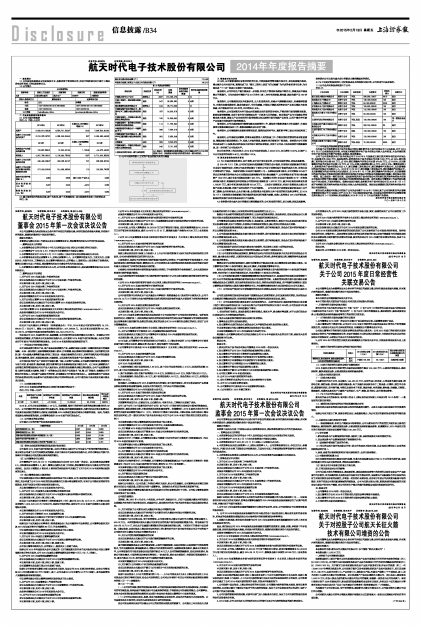 航天时代电子技术股份有限公司2014年年度报告摘要