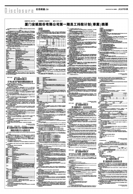 审议通过了《厦门安妮股份有限公司第一期员工持股计划(草案)》。表决结果:1票同意,0票反对,0票弃权。