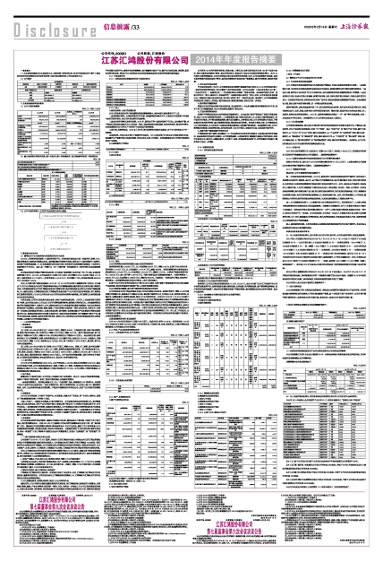 江苏汇鸿股份有限公司2014年年度报告摘要