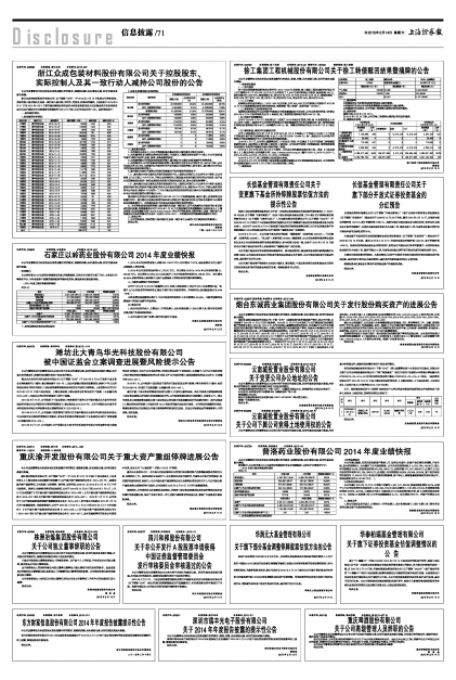 东方财富信息股份有限公司2014年年度报告披露提示性公告