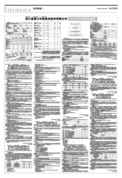 浙江富春江环保热电股份有限公司2014年年度报告摘要