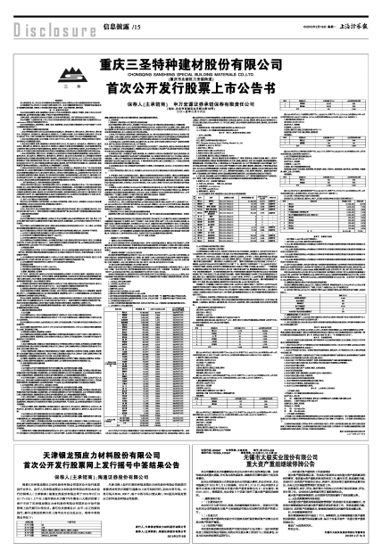 重庆三圣特种建材股份有限公司首次公开发行股票上市公告书