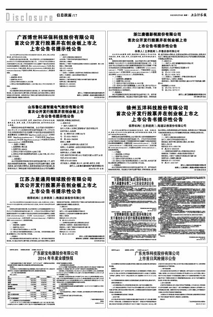 2014年年度业绩快报