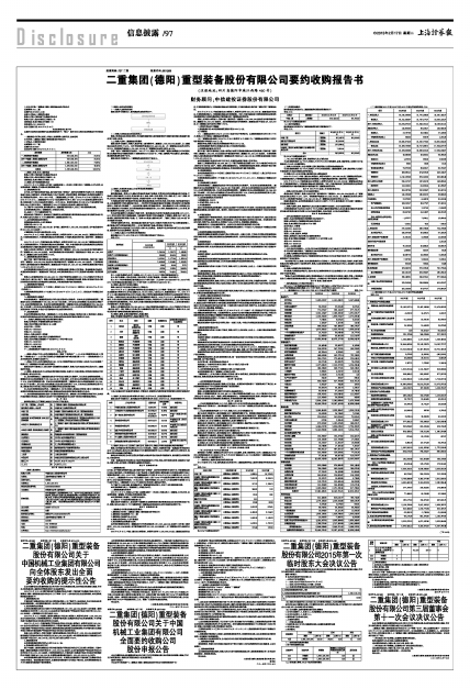 ●本公告内容来源于《二重集团(德阳)重型装备股份有限公司要约收购报告书》