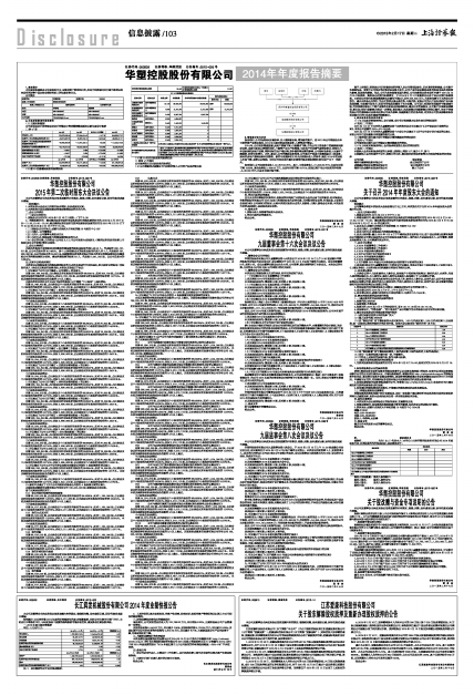 长江润发机械股份有限公司2014年度业绩快报公告