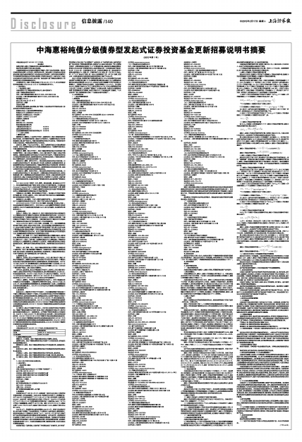 中海惠裕纯债分级债券型发起式证券投资基金更新招募说明书摘要