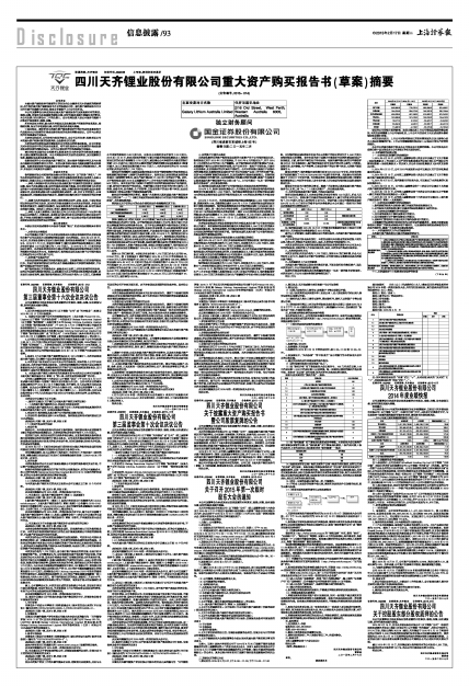 四川天齐锂业股份有限公司重大资产购买报告书(草案)摘要