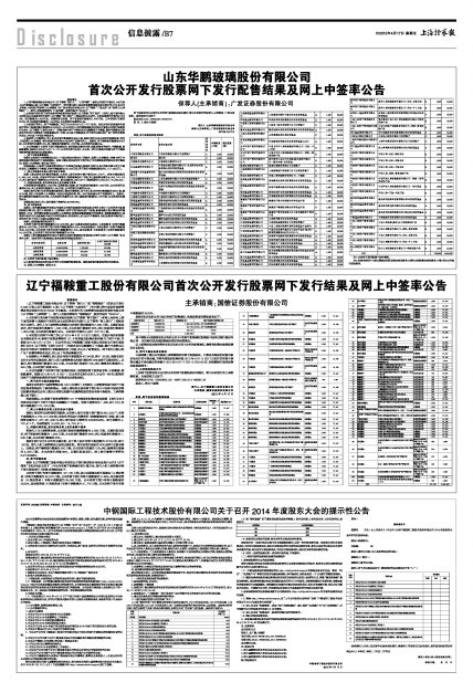 辽宁福鞍重工股份有限公司首次公开发行股票网下发行结果及网上中签率公告