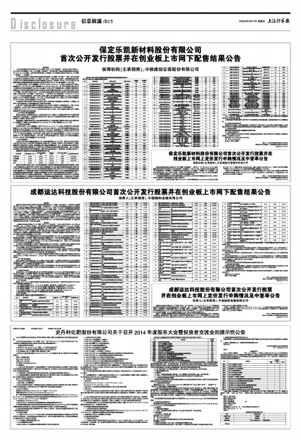 成都运达科技股份有限公司首次公开发行股票并在创业板上市网下配售结果公告