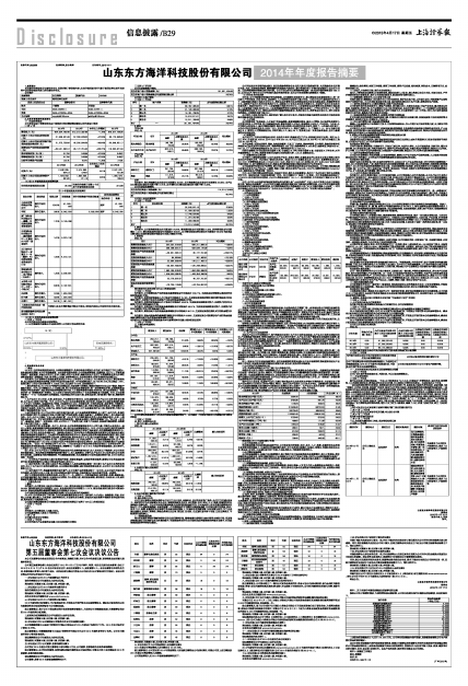 山东东方海洋科技股份有限公司2014年年度报告摘要