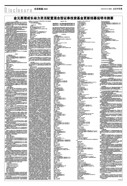 金元惠理成长动力灵活配置混合型证券投资基金更新招募说明书摘要
