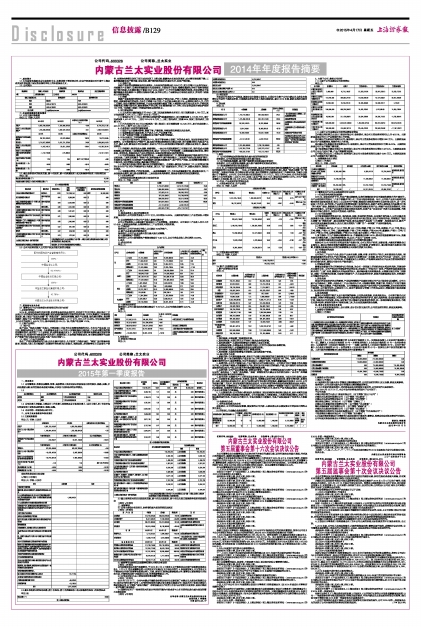 内蒙古兰太实业股份有限公司2014年年度报告摘要