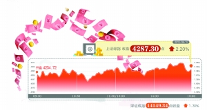 二级市场迎来打新资金大幅回流,加上场外资金不断入市,对沪深股指形成推升。昨日,A股延续强势大幅走高,上证综指盘中突破4300点,两市成交大幅放大至1.5万亿元以上,逼近前期创下的历史天量;但创业板指数逆势收跌。伴随股指接连攀上七年高位,行业板块表现分化日益显著。郭晨凯 制图