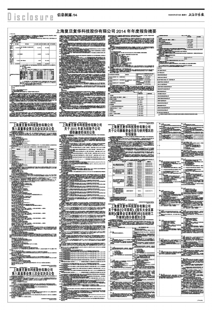 上海复旦复华科技股份有限公司2014年年度报告摘要
