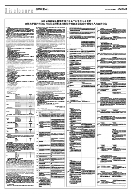 交银施罗德沪深300行业分层等权重指数证券投资基金基金份额持有人大会的公告