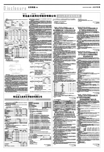《青岛金王应用化学股份有限公司 2014 年年度报告》全文刊登