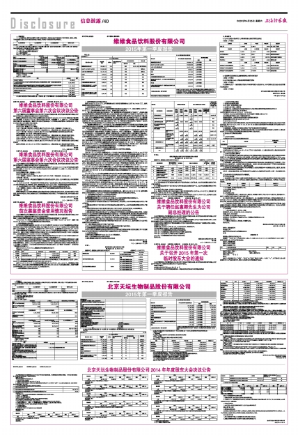 北京天坛生物制品股份有限公司2014年年度股东大会决议公告