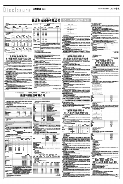 证券代码:000909 证券简称:数源科技 公告编号:2015-21