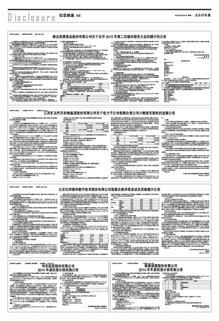 证券代码:300449 证券简称:汉邦高科 公告编号:2015-002