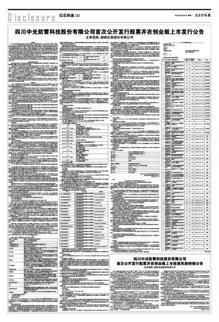 四川中光防雷科技股份有限公司首次公开发行股票并在创业板上市发行公告