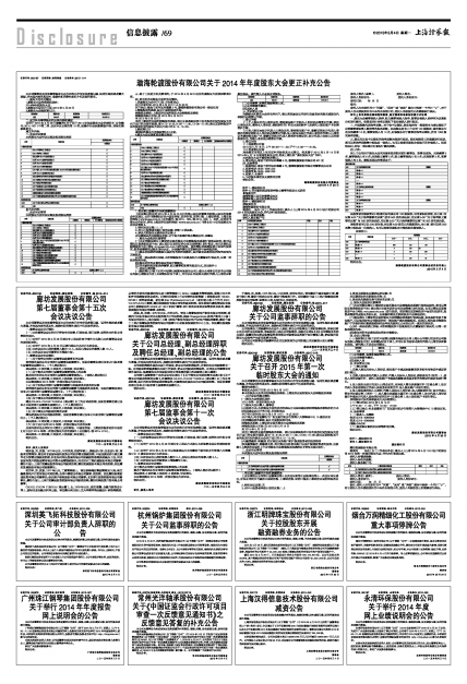 渤海轮渡股份有限公司关于2014年年度股东大会更正补充公告