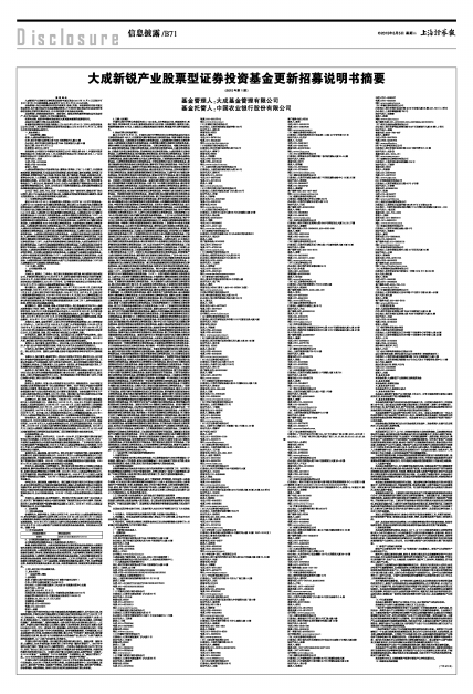 本基金名称:大成新锐产业股票型证券投资基金