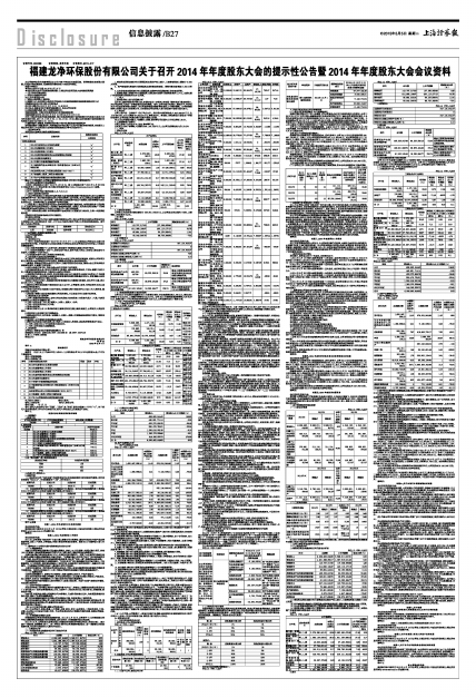 福建龙净环保股份有限公司关于召开2014年年度股东大会的提示性公告暨2014年年度股东大会会议资料
