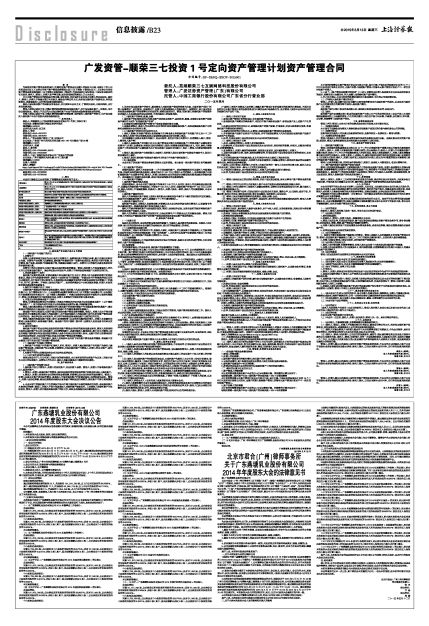 广发资管-顺荣三七投资1号定向资产管理计划资产管理合同