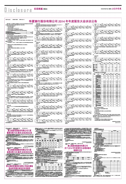 华夏银行股份有限公司2014年年度股东大会决议公告