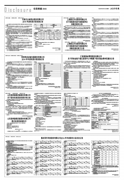 重庆再升科技股份有限公司2014年年度股东大会决议公告