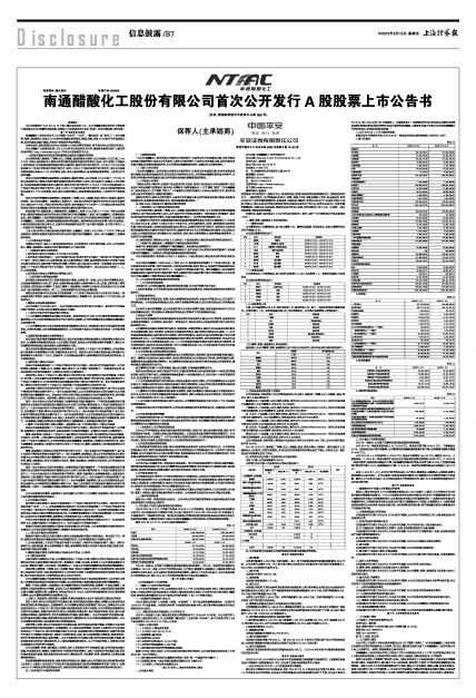 南通醋酸化工股份有限公司(以下简称“本公司”、“公司”、“醋化股份”或“发行人”)及全体董事、监事、高级管理人员保证上市公告书所披露信息的真实、准确、完整,承诺上市公告书不存在虚假记载、误导性陈述或重大遗漏,并承担个别和连带的法律责任。