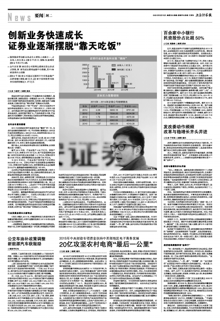 我国证券行业扎实度过了行业整体实力显著提升、基础功能完善、创新发展进一步提速的2014年,尽管盈利状况仍与股票市场的波动明显挂钩,但传统、创新业务日益融合发展,已使证券行业“靠天吃饭”的局面大为改善。