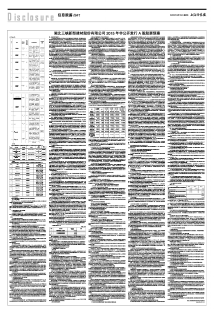 湖北三峡新型建材股份有限公司2015年非公开发行A股股票预案