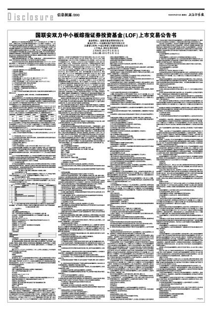 国联安双力中小板综指证券投资基金(LOF)上市交易公告书