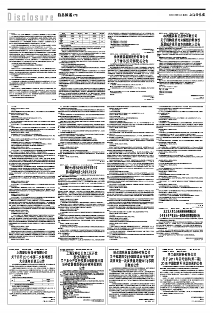 股票代码:600891 股票简称:秋林集团 编号:临2015-021