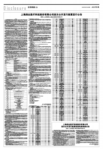 上海润达医疗科技股份有限公司首次公开发行股票发行公告