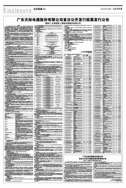 广东天际电器股份有限公司首次公开发行股票发行公告