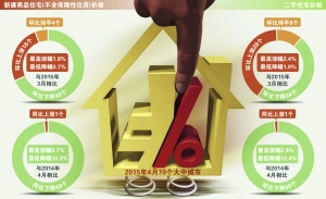 统计局数据显示,4月份70个大中城市新建商品住宅和二手住宅价格环比上涨的城市分别有18个和28个,分别比上月增加了6个和16个;持平和下降的城市个数均有所减少。初步测算,4月份70个大中城市新建商品住宅价格环比综合平均上涨0.3%。