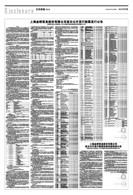 上海金桥信息股份有限公司首次公开发行股票发行公告