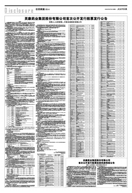 灵康药业集团股份有限公司首次公开发行股票发行公告