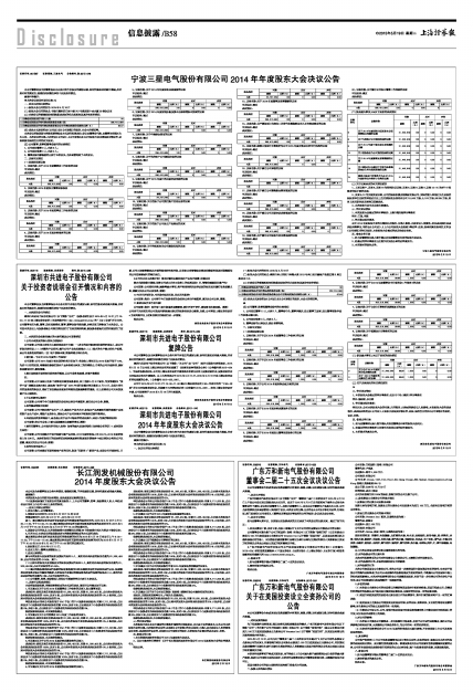 宁波三星电气股份有限公司2014年年度股东大会决议公告