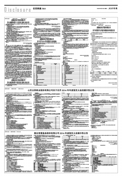 山东太阳纸业股份有限公司关于召开2014年年度股东大会的提示性公告