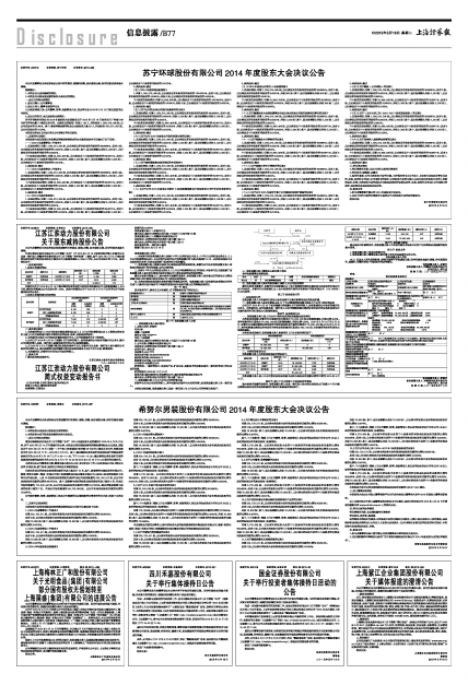 苏宁环球股份有限公司2014年度股东大会决议公告