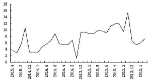 2015年一季度,我国全社会固定资产投资同比名义增长13.5%,较上年同期下降4.1个百分点。虽然受“三期叠加”因素综合影响,我国经济增长速度回落已经成为社会共识,但微观经济主体对宏观经济短期内增长前景预期整体还不乐观,主要表现在当前社会投资与消费倾向回落。2015年4月末,反映社会交易意愿的狭义货币供应量M1仅同比增长3.7%。