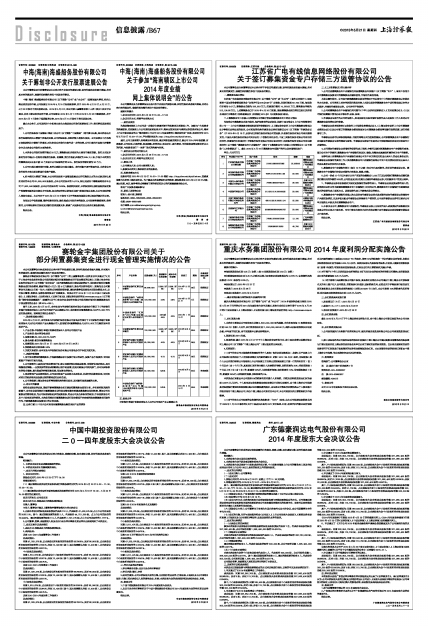 重庆水务集团股份有限公司2014年度利润分配实施公告